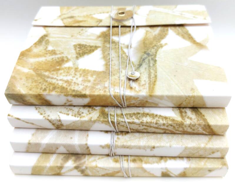 Gemaakt door middel van ecoprinten, natuurdruk of zeefdruk met natuurlijke inkt